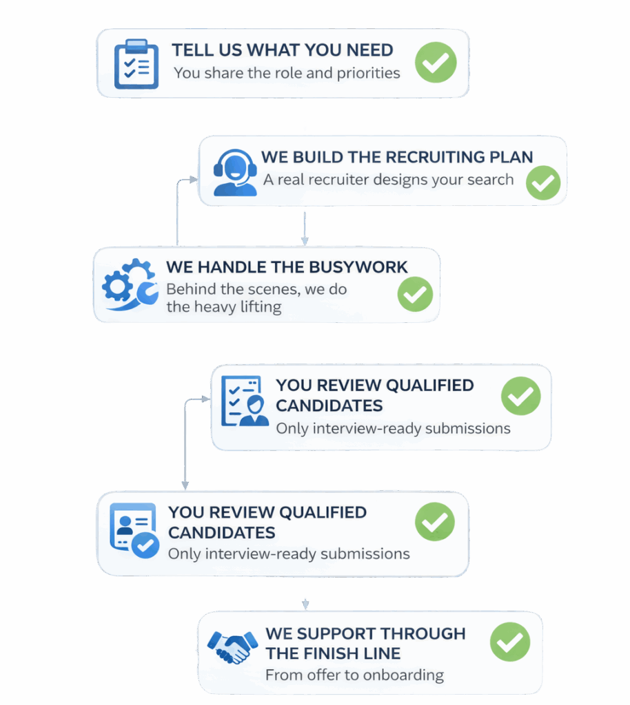 TRS is built for real estate firms and property service companies that need dependable hiring—minus job boards and agency placement fees.